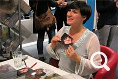 In der Pause plauderte Frau Keck ungezwungen mit den Besuchern, verteilte Autogrammkarten und signierte ihre Bücher, die Frau Scheller vom Quickborn-Verlag am Büchertisch verkaufte. In der zweiten Hälfte ging es dann zunächst in kleinen gemeinen "Szenen einer Ehe" um die Zeit, wenn die "Leev" sich schon etwas verflüchtigt hat. Außerdem bot sie mitreißende Gesangseinlagen wie zum Beispiel Schneewittchens Lied aus "Rock auf platt 3" zur Melodie des Hits "I will survive". Da hielt es die Gäste kaum auf ihren Plätzen! Mit dem bekannten Lied "Dat du min Leevsten büst" beendete Sandra Keck ihren unterhaltsamen Auftritt, und nachdem sich ihre Zuhörer die Lachtränen aus den Augen gewischt hatten, sangen fast alle mit.