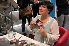In der Pause plauderte Frau Keck ungezwungen mit den Besuchern, verteilte Autogrammkarten und signierte ihre Bücher, die Frau Scheller vom Quickborn-Verlag am Büchertisch verkaufte. In der zweiten Hälfte ging es dann zunächst in kleinen gemeinen "Szenen einer Ehe" um die Zeit, wenn die "Leev" sich schon etwas verflüchtigt hat. Außerdem bot sie mitreißende Gesangseinlagen wie zum Beispiel Schneewittchens Lied aus "Rock auf platt 3" zur Melodie des Hits "I will survive". Da hielt es die Gäste kaum auf ihren Plätzen! Mit dem bekannten Lied "Dat du min Leevsten büst" beendete Sandra Keck ihren unterhaltsamen Auftritt, und nachdem sich ihre Zuhörer die Lachtränen aus den Augen gewischt hatten, sangen fast alle mit.